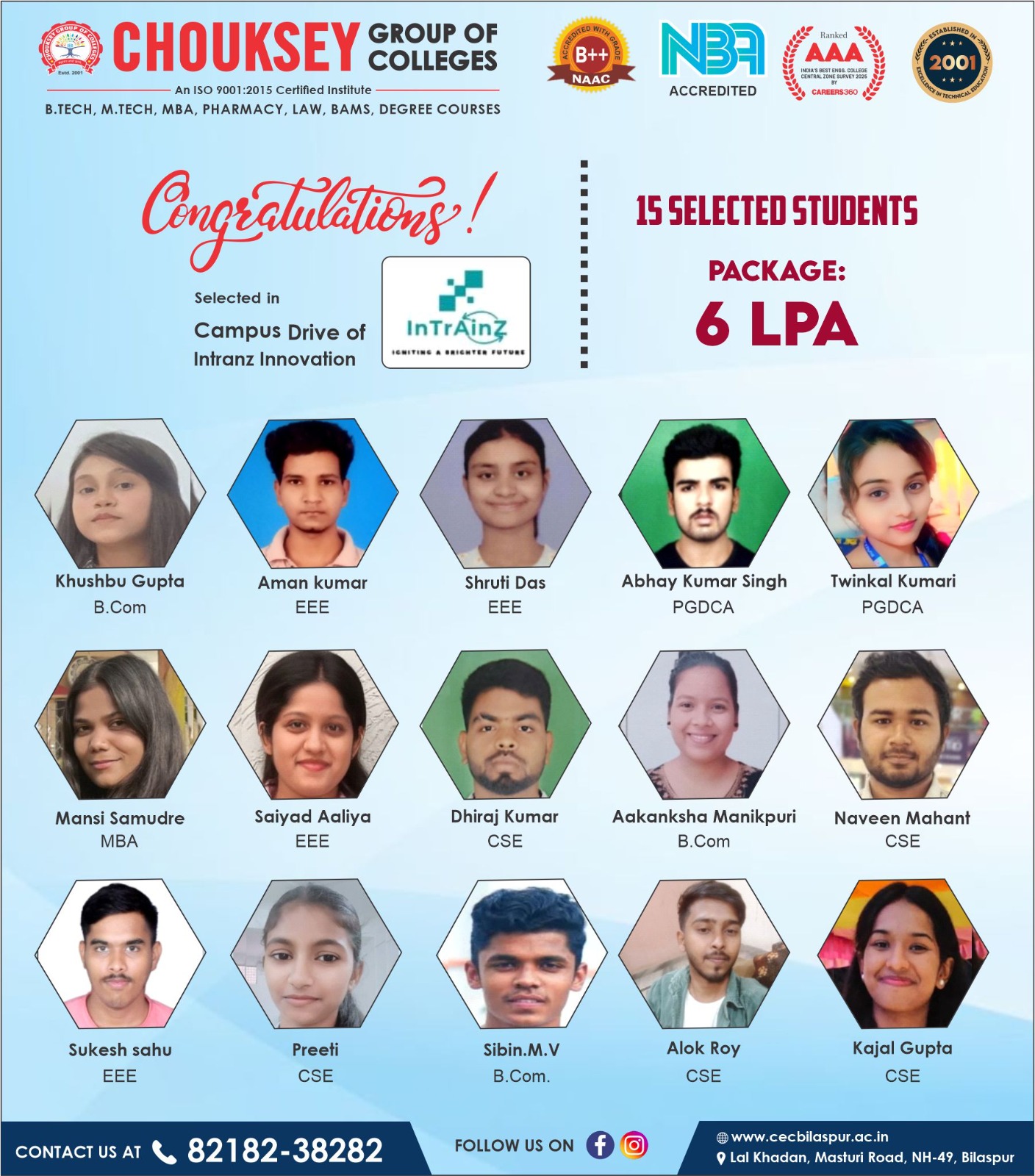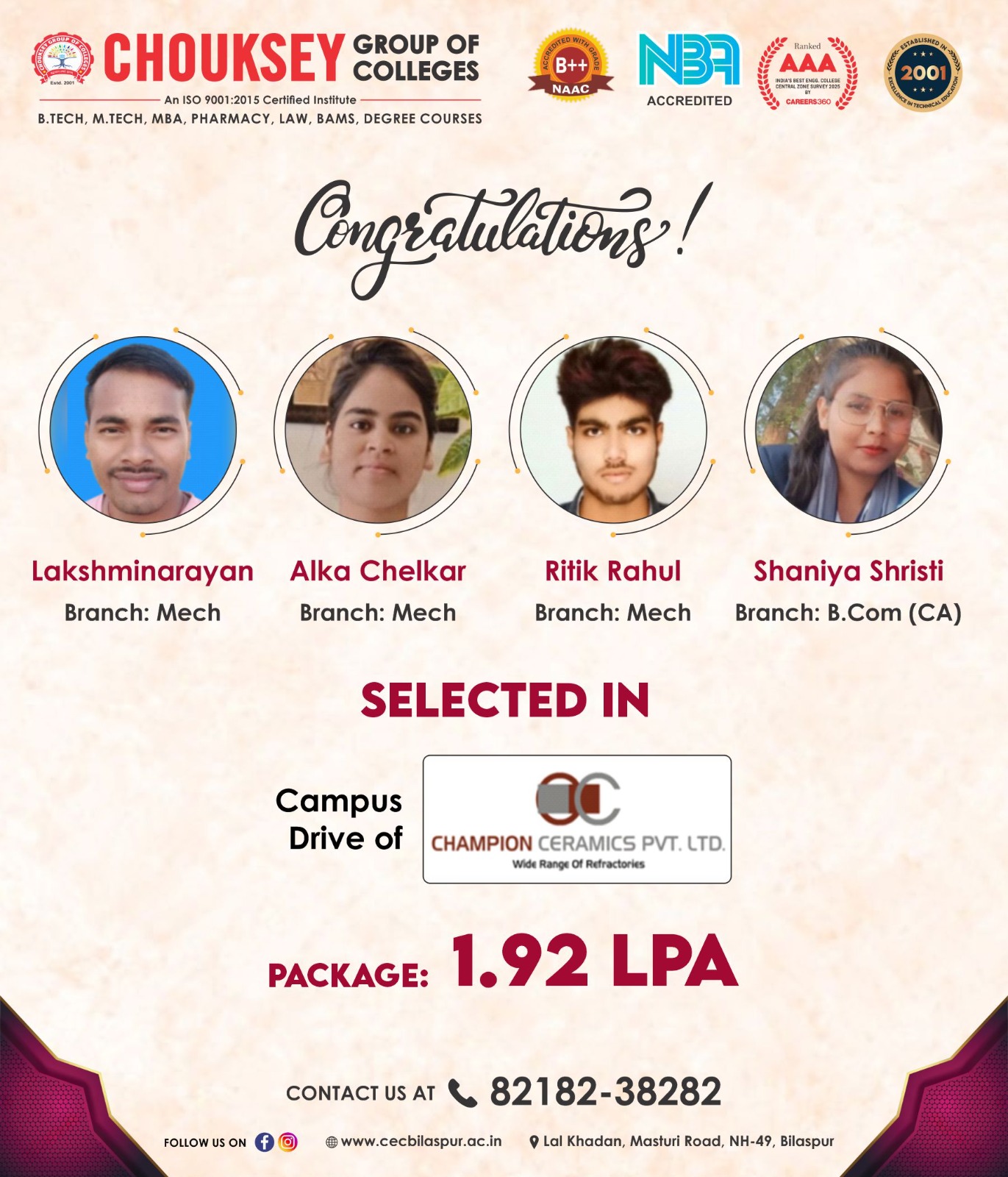 40 Students Placed in MRF Limited – A Proud Moment for Chouksey Group of Colleges40 Students Placed in MRF Limited – A Proud Moment for Chouksey Group of Colleges
