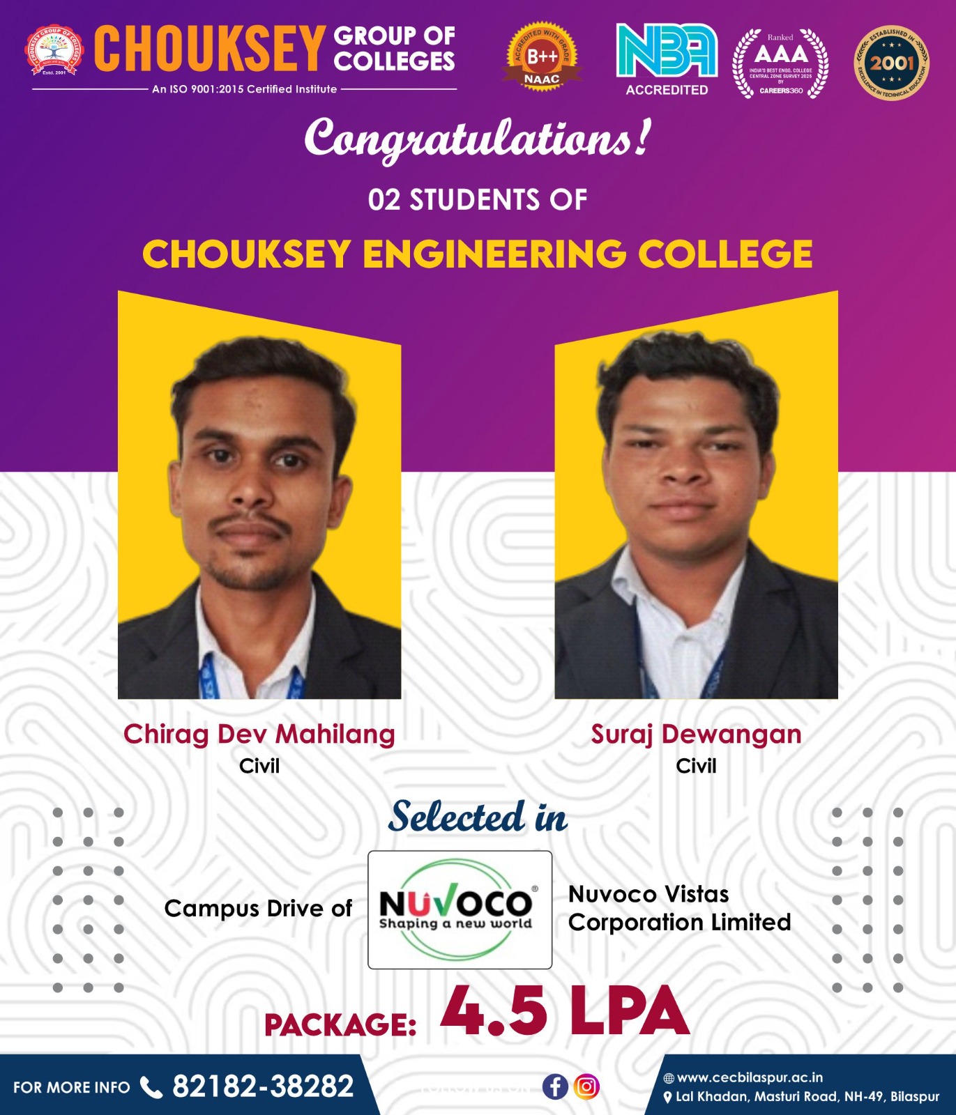 Civil Engineering students for getting selected in the Campus Drive of Shree CementCivil Engineering students for getting selected in the Campus Drive of Shree Cement